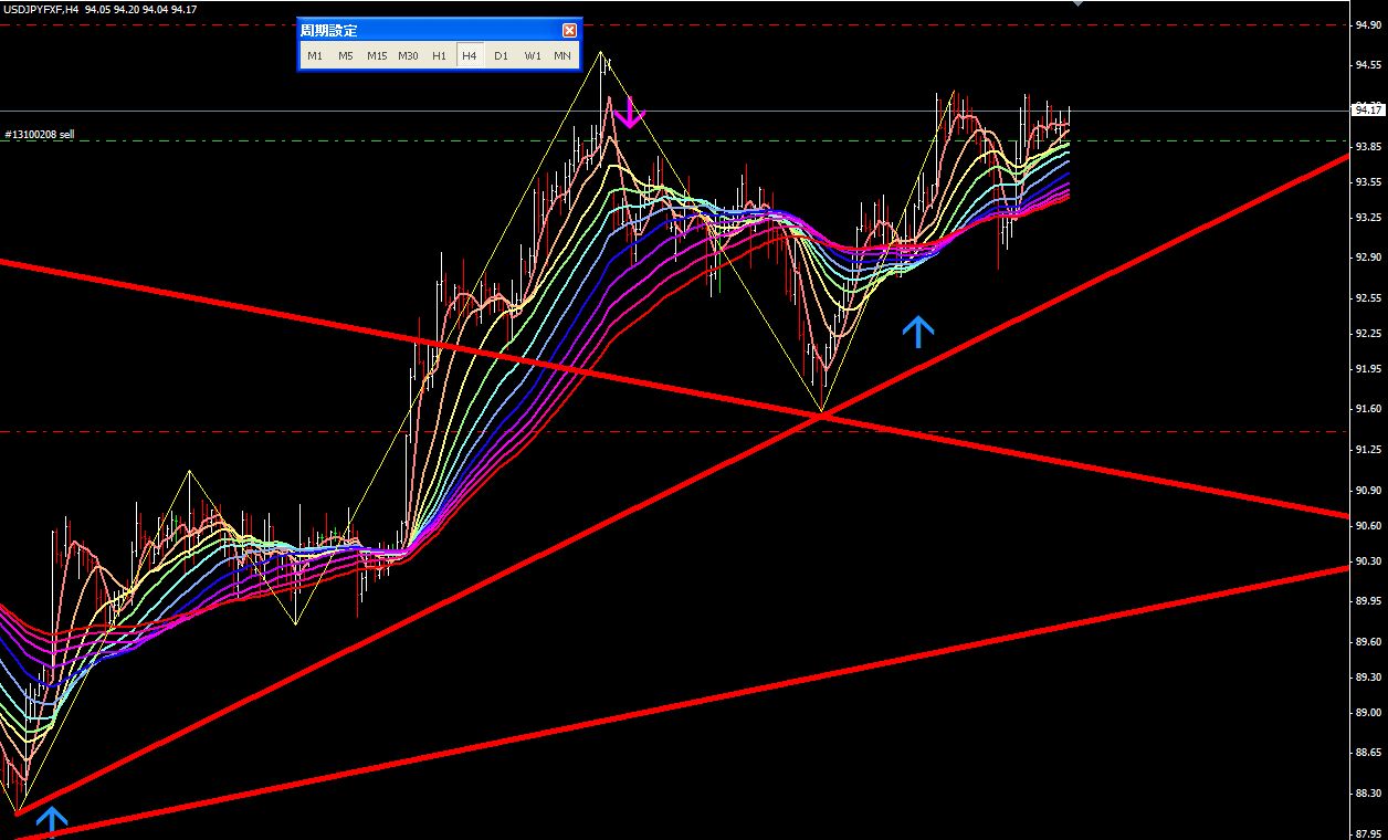 図は本日のドル円4時間足。