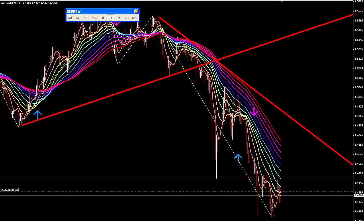 図は本日のポンドドル4時間足。