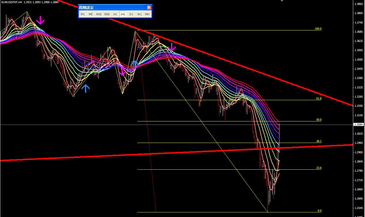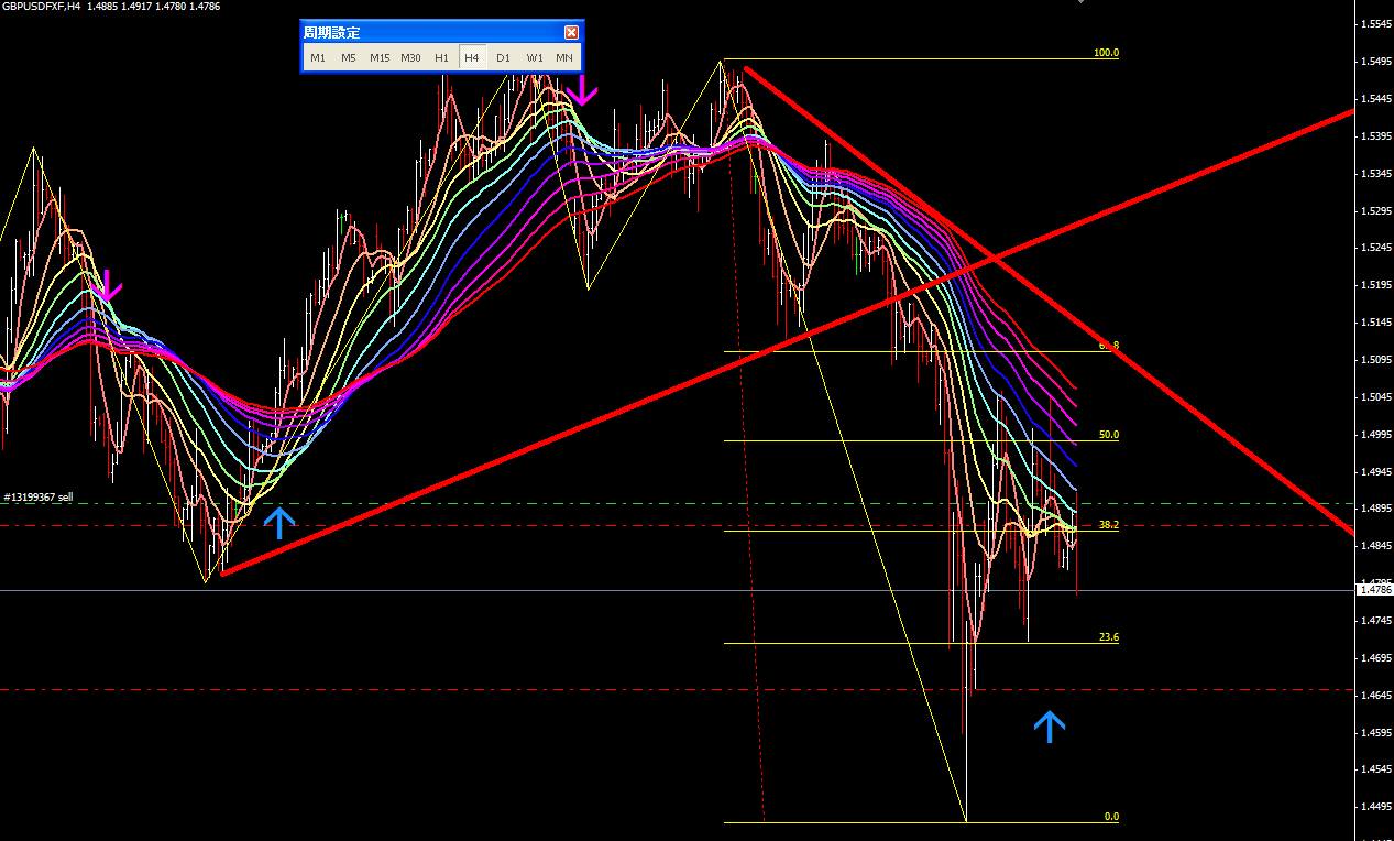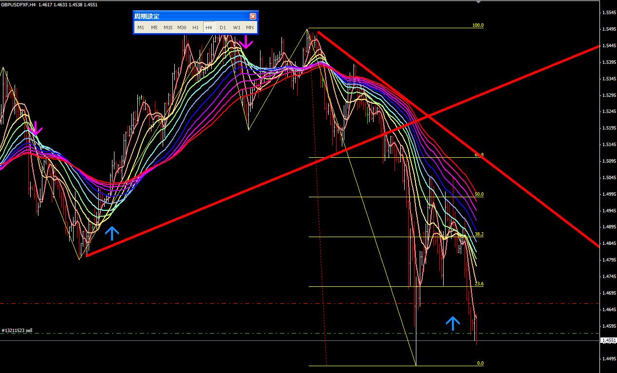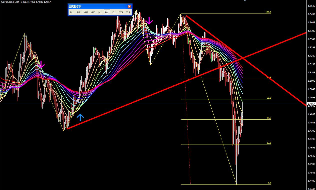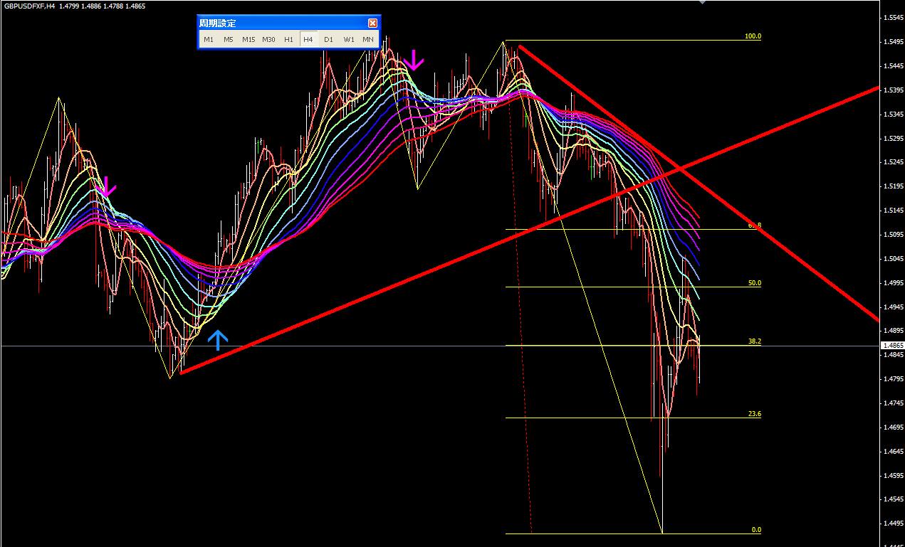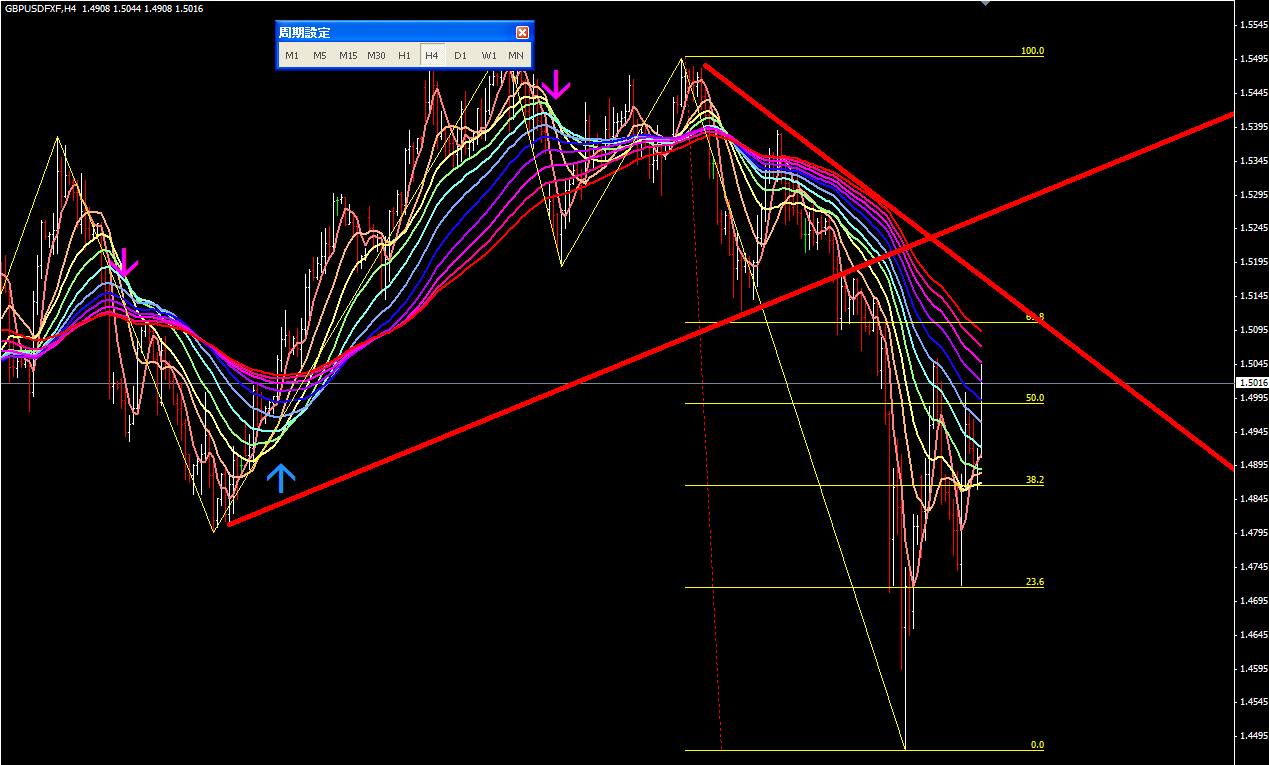 図は本日のポンドドル4時間足。