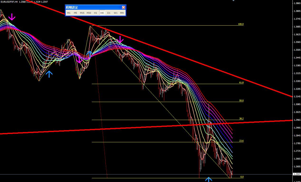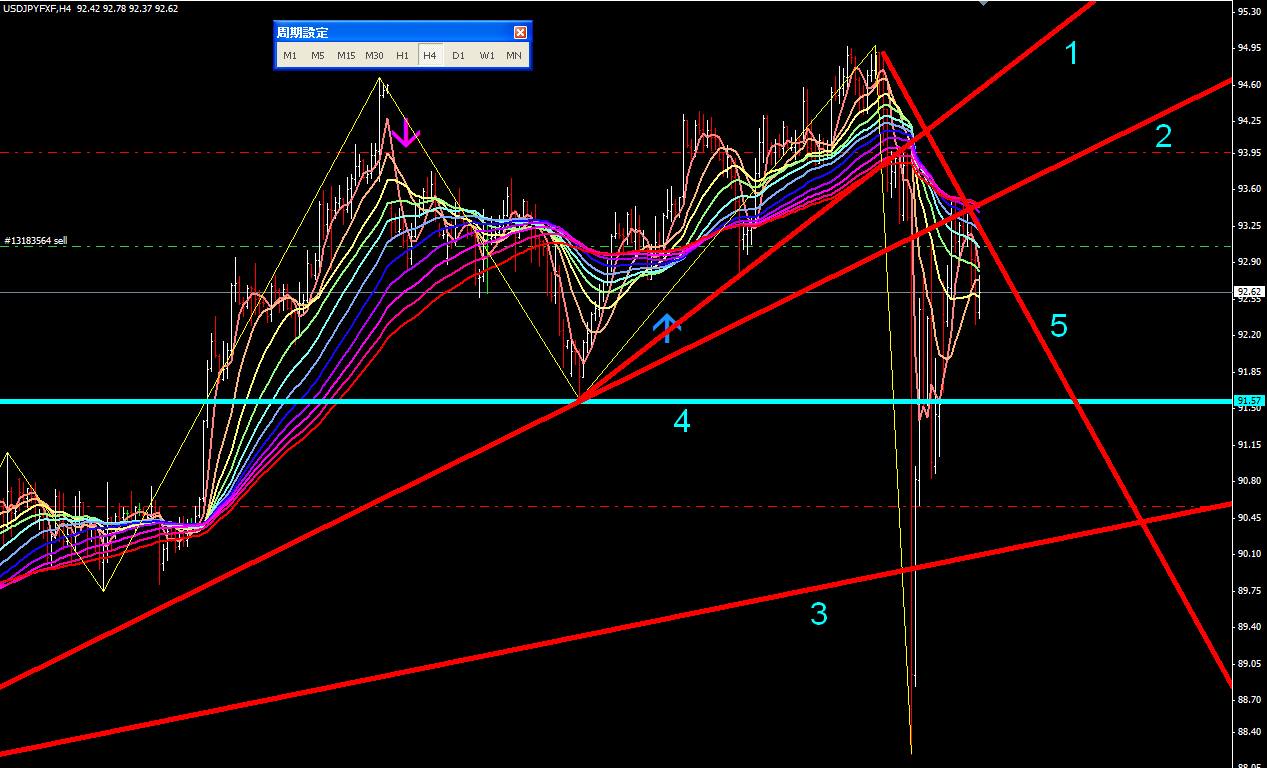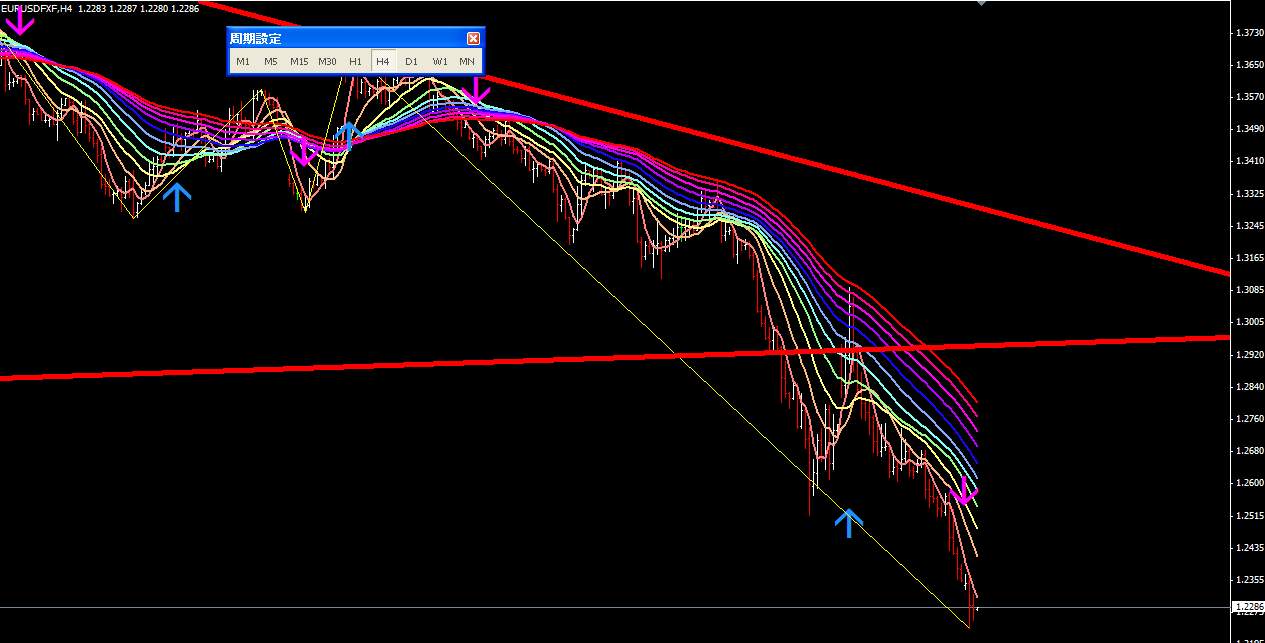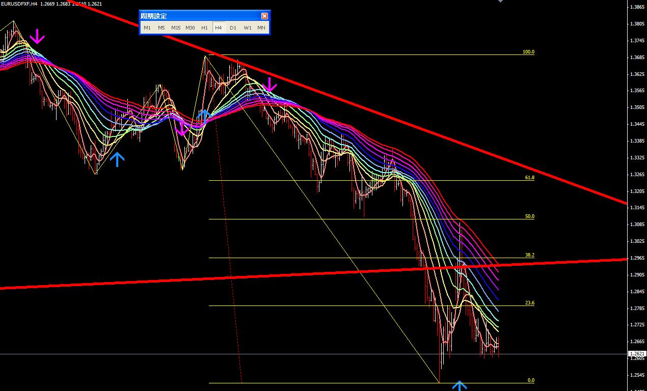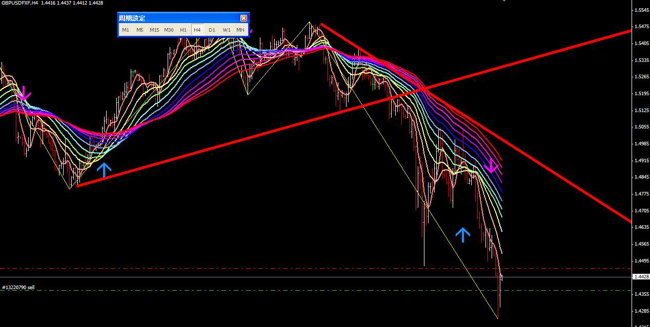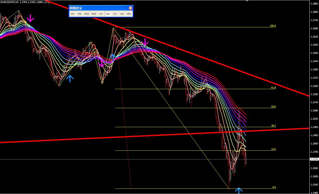 図は本日のポンドドル4時間足。