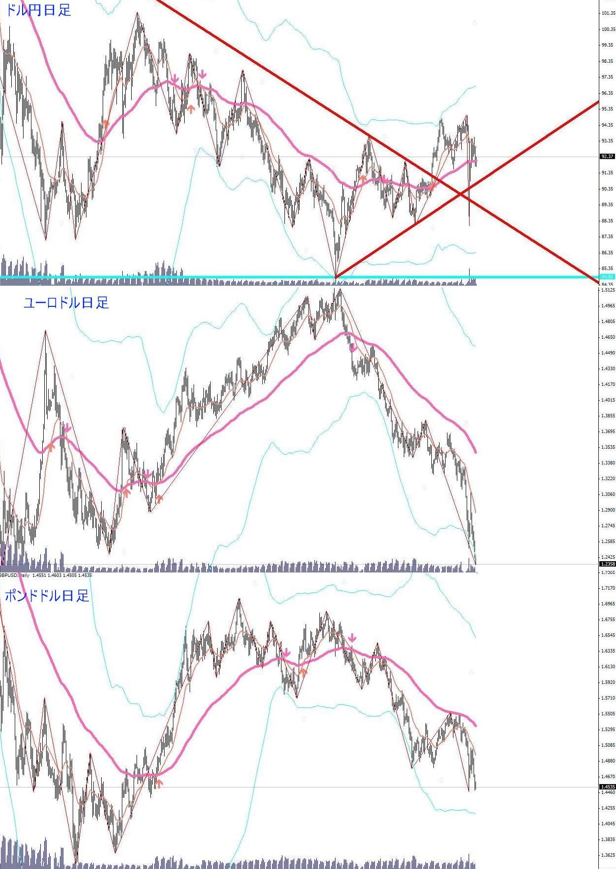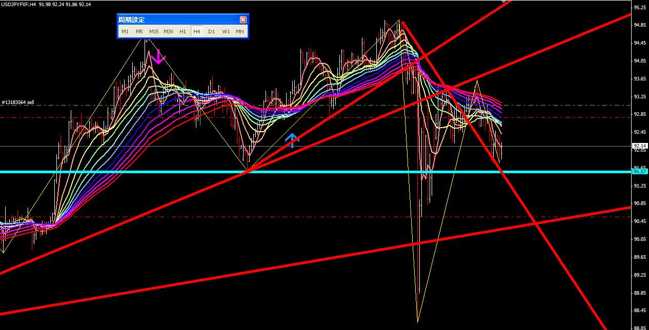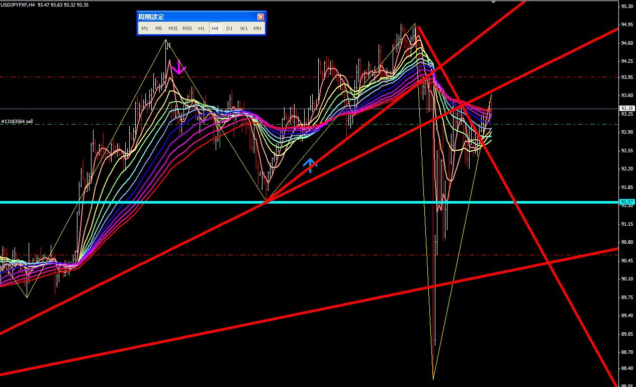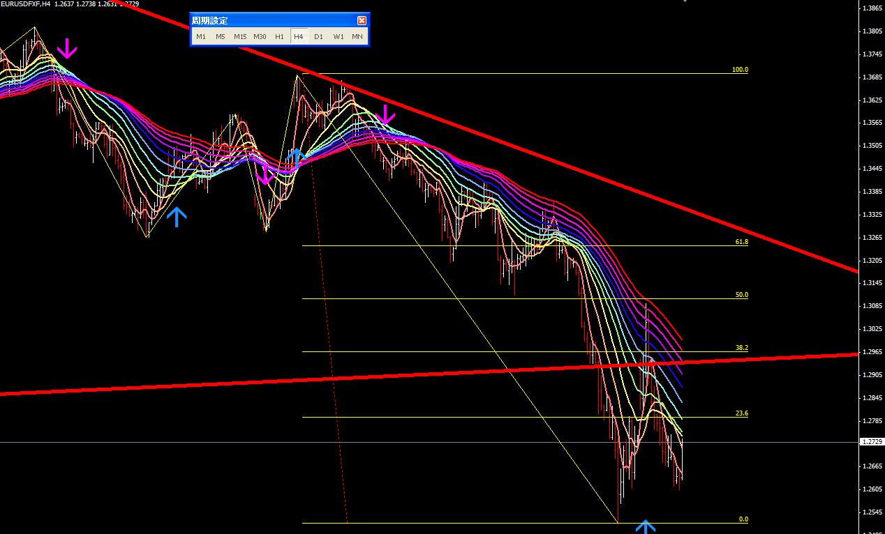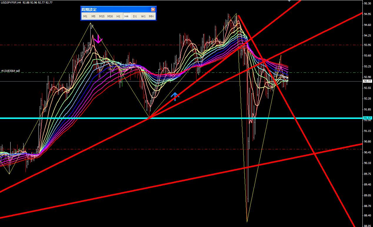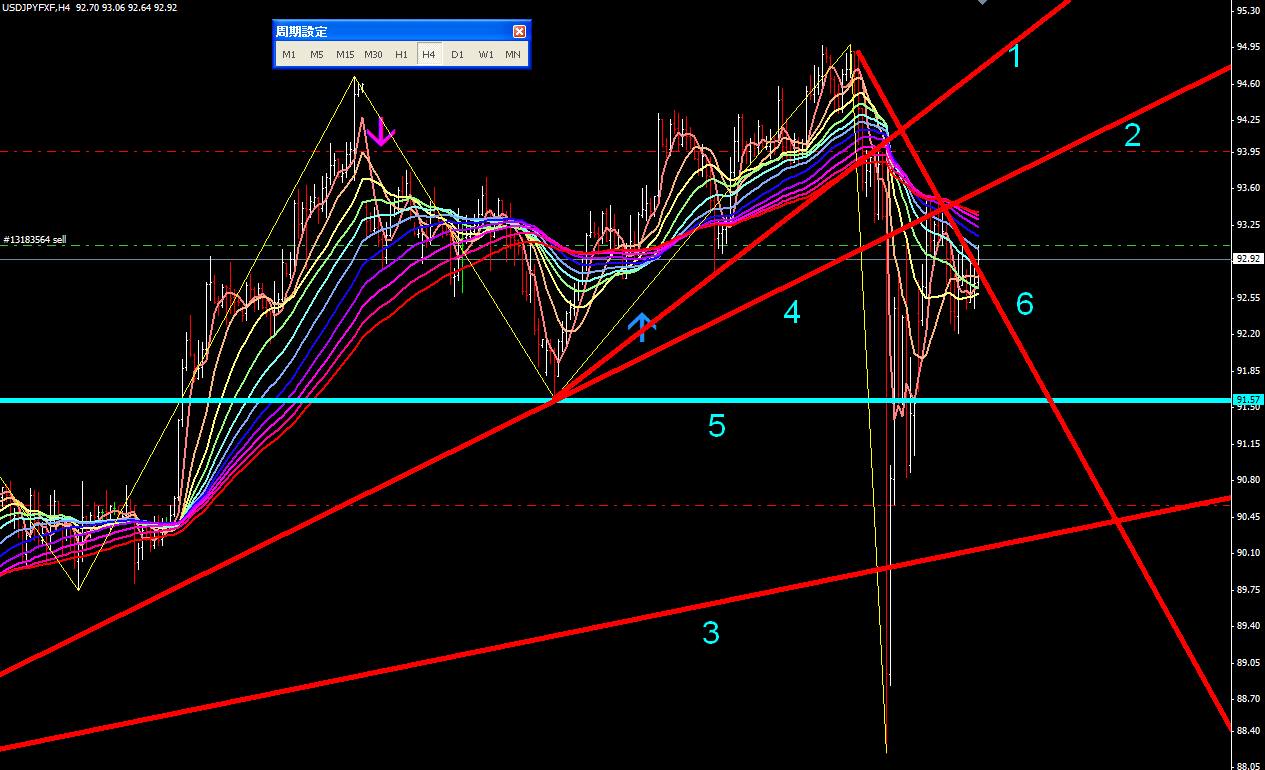 図は本日のポンドドル4時間足。